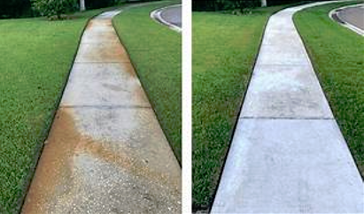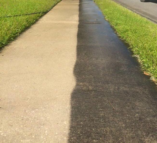 The concrete on your driveway gets dirty, slippery and ugly! We can make that concrete look like new with our amazing surface cleaners! We clean brick, stone, and pavers too. The combination of pre and post chemical treatment of the flat surfaces around your home along with use of high volume commercial pressure washing equiptment will leave your driveway and walkways with a clean, uniform apperance free of any organic growth and surface.